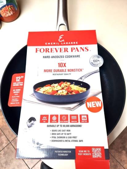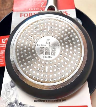 I purchased two Emeril Lagasse non-stick pans at Walmart. The prices were good, and the pans looked great. They are induction compatible. I love my induction cooktop. Cooking food in these pans was a wonderful experience. Nothing sticks to the pans, and they cleaned up easily with a sponge.